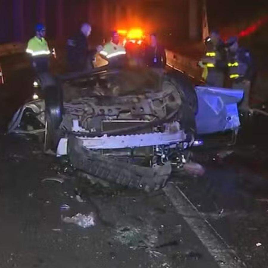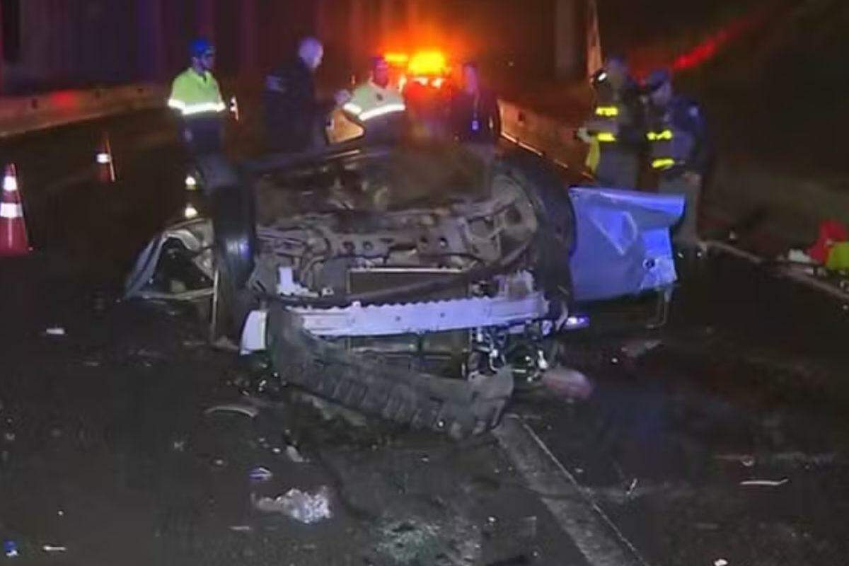 O veículo caiu capotado e um segundo carro, ao tentar desviar do acidente, atropelou uma das vítimas, arrastando o corpo por cerca de dez metros