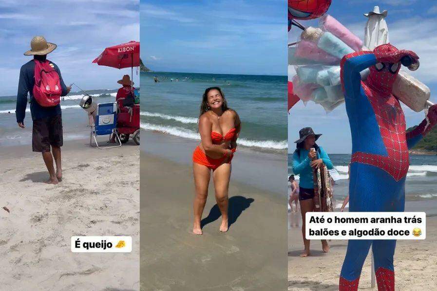 Irmã de Cristiano Ronaldo se admira com ambulantes em praia do Litoral de SP; 'meu respeito'