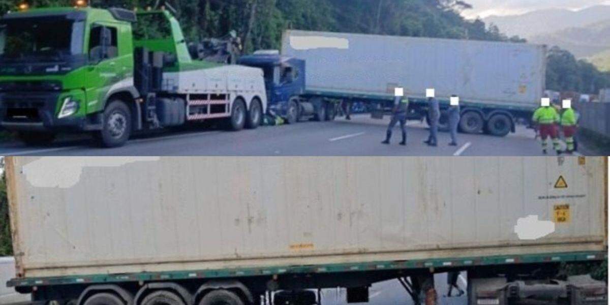 Carreta tem pane mecânica e interdita rodovia em Santos, no litoral de São Paulo