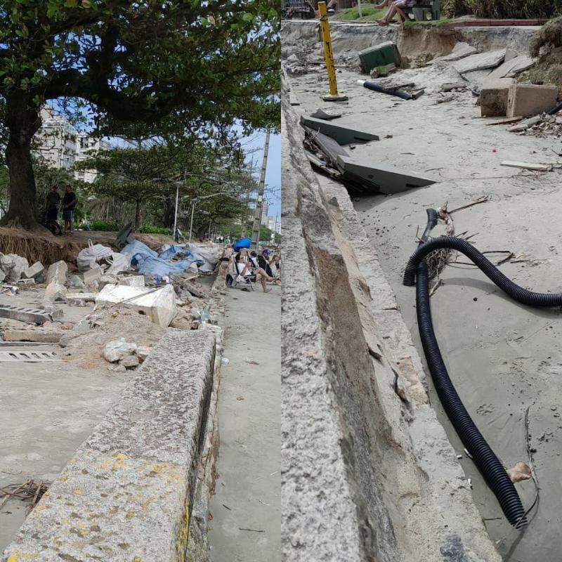 Ventania em Santos faz parte da estrutura de passarela de shopping se soltar e causa estragos na Vila Natalina