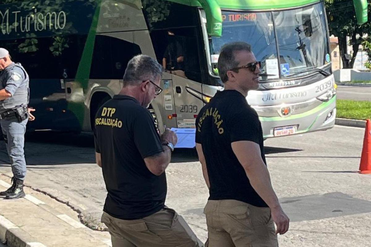 Ônibus e vans de turismo de um dia são barrados e multados em Guarujá durante operação no litoral de São Paulo; entenda