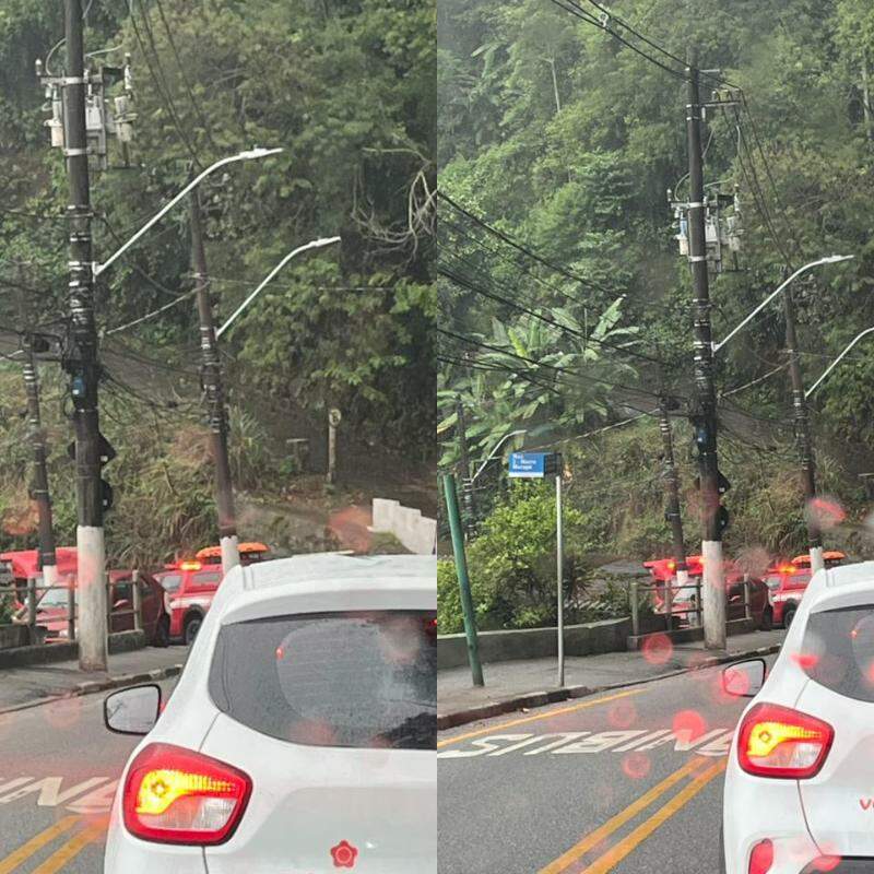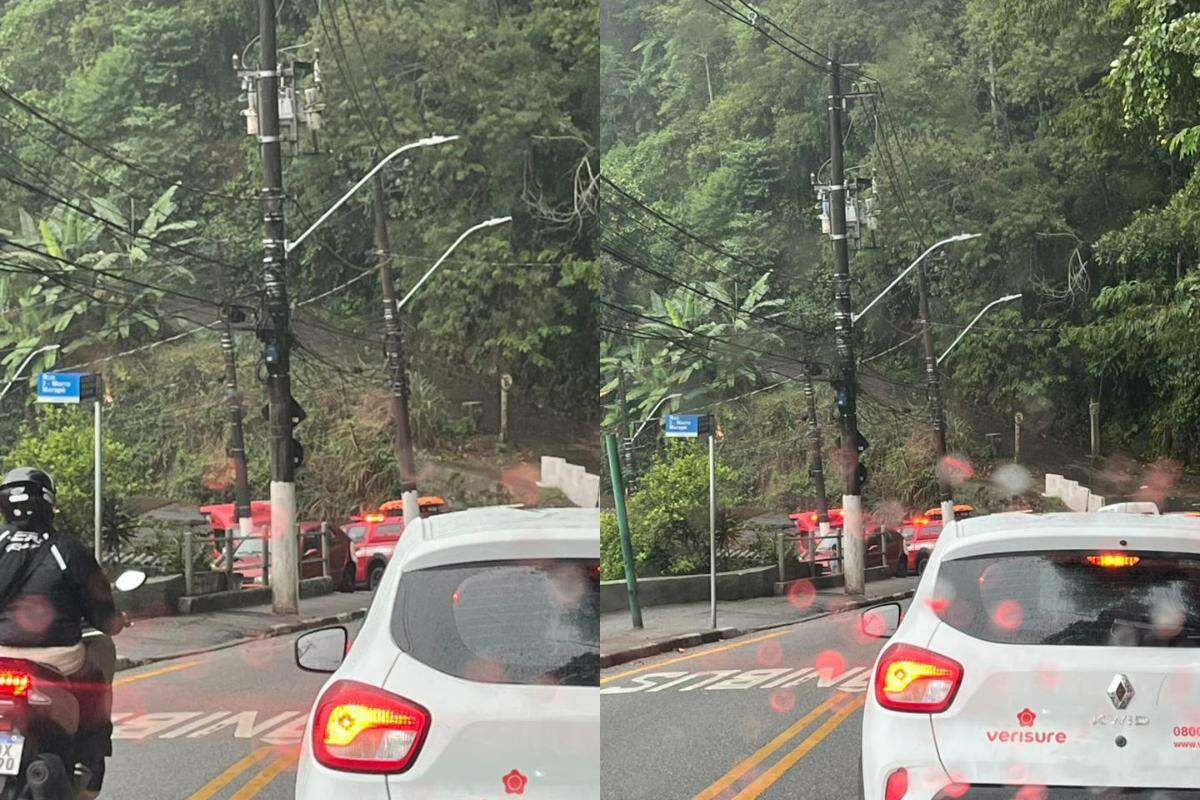 Carro bate em árvore, vai para ribanceira do Morro do Marapé e tem risco de queda em Santos