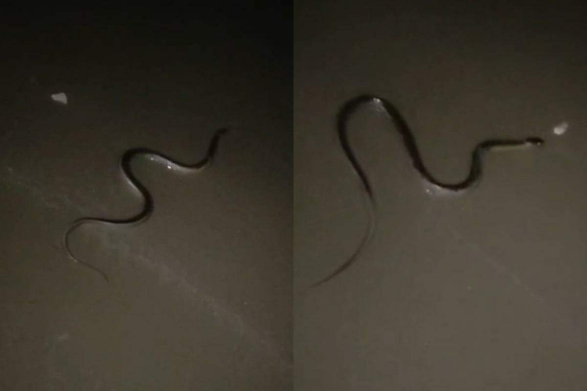 A presença da serpente na faixa de areia causou medo em quem estava próximo; biólogo analisa a espécie