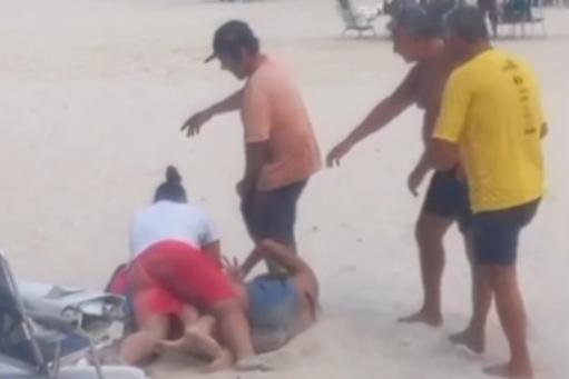 Grupo de homens tentou separar as duas mulheres; registro da confusão repercutiu nas redes sociais