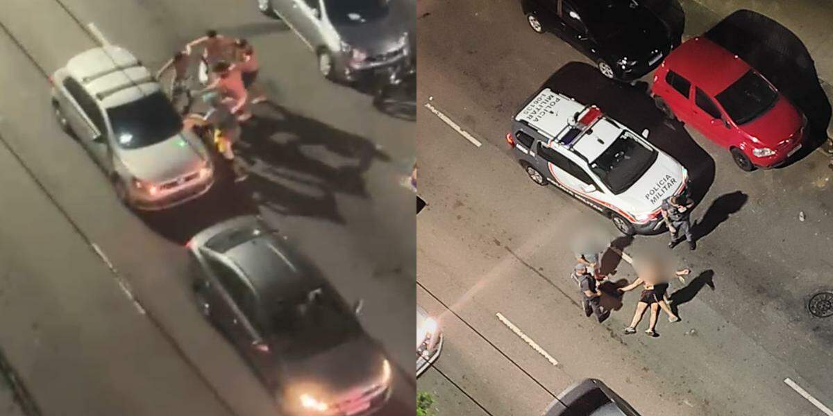 Ladrão é imobilizado em luta com pedestres após atacar jovem em Santos e ainda leva bengaladas de idoso; VÍDEO