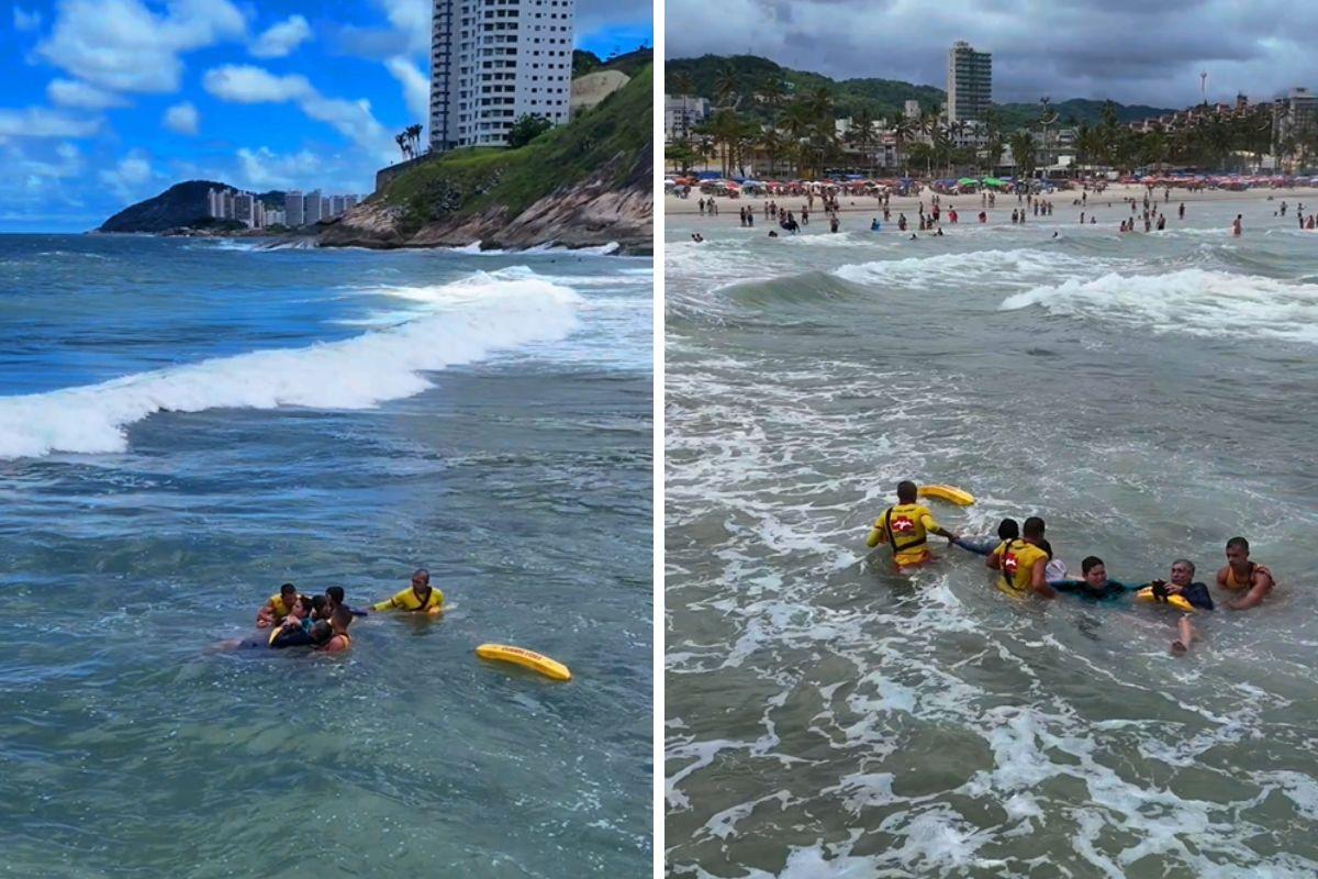 Família fica presa no mar em praia de Guarujá; VÍDEO