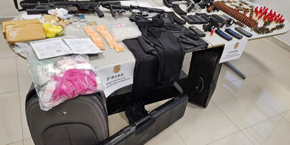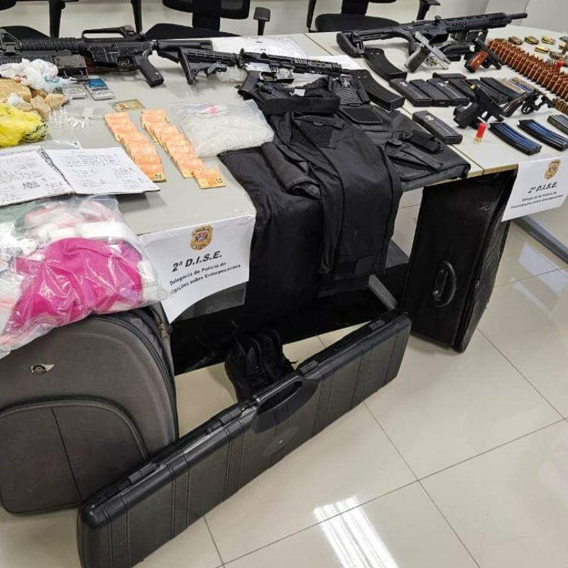 A namorada de 'Patrikonha' também foi capturada. Nos imóveis do casal, os agentes encontraram um arsenal de guerra, contendo lança-granadas norte-americano, granadas, fuzis, pistolas e munições de alto calibre