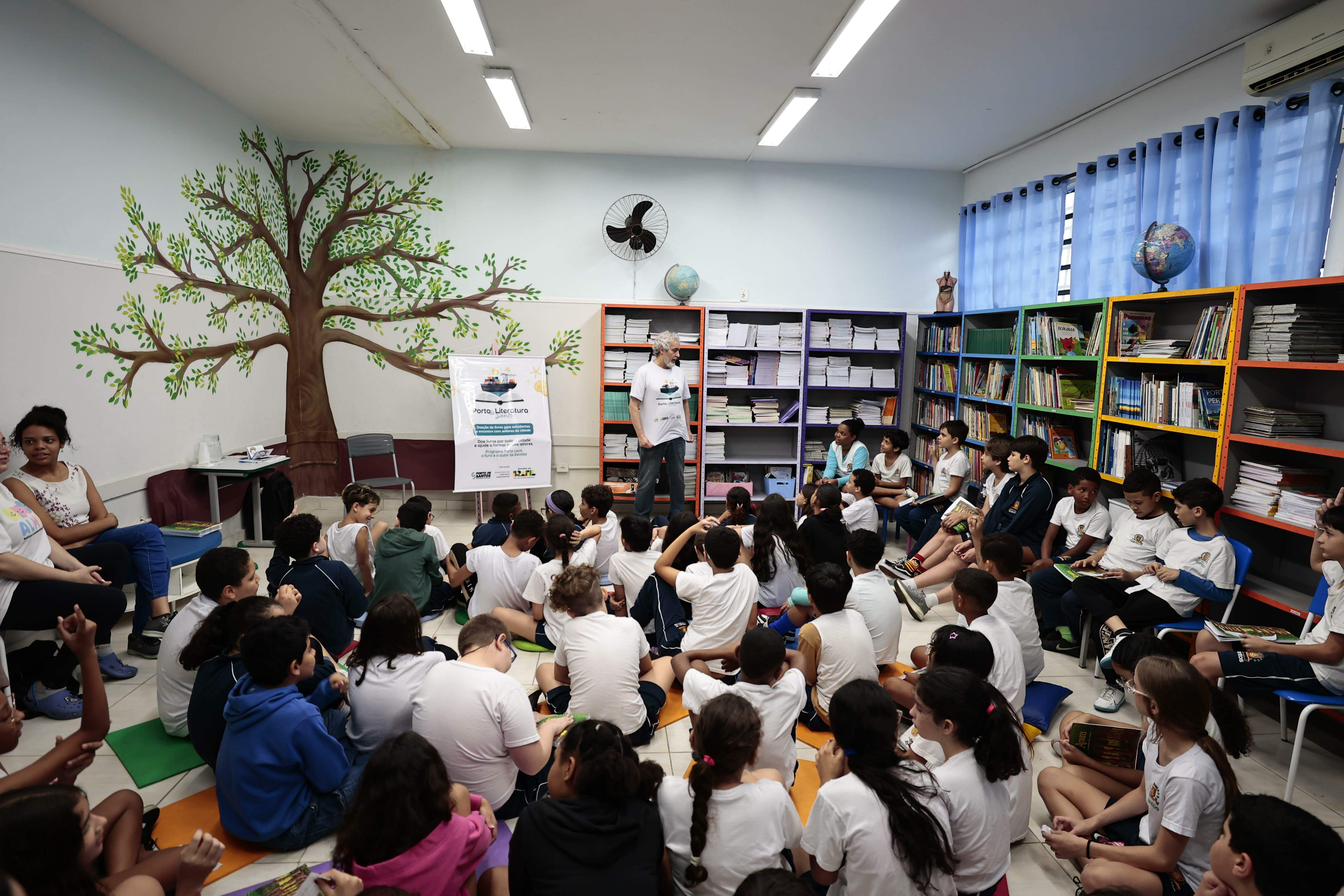 Autor participa de atividade do Porto Literatura e conversa com estudantes que compartilharam sonhos, dúvidas e descobertas sobre o universo da leitura