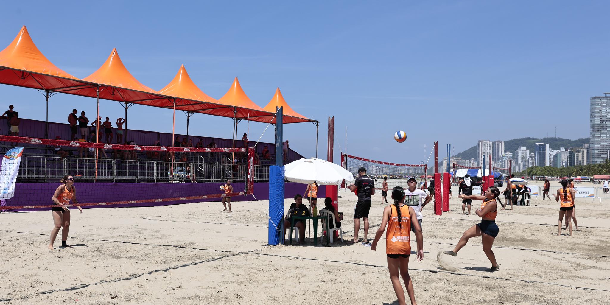 Primeira etapa do Campeonato Santista de Vôlei de Praia reúne mais de 200 jogos na arena montada na praia